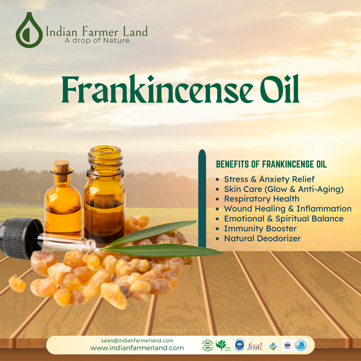 Frankincense oil is uniquely warm, sweet and light with floral incense like aroma which elevates spiritual experience.