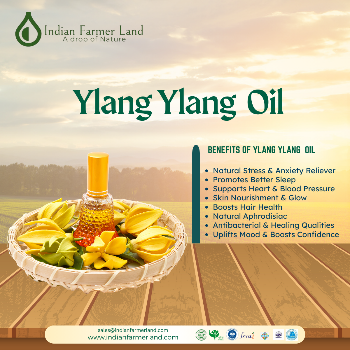 Ylang ylang oil is nicely blends with bergamot, grapefruits, lavender and sandalwood.